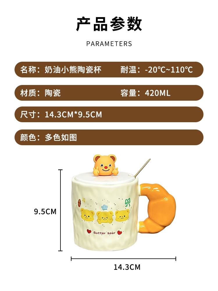 Cute Butter Bear Ceramic Mug with Lid and Spoon 420ML