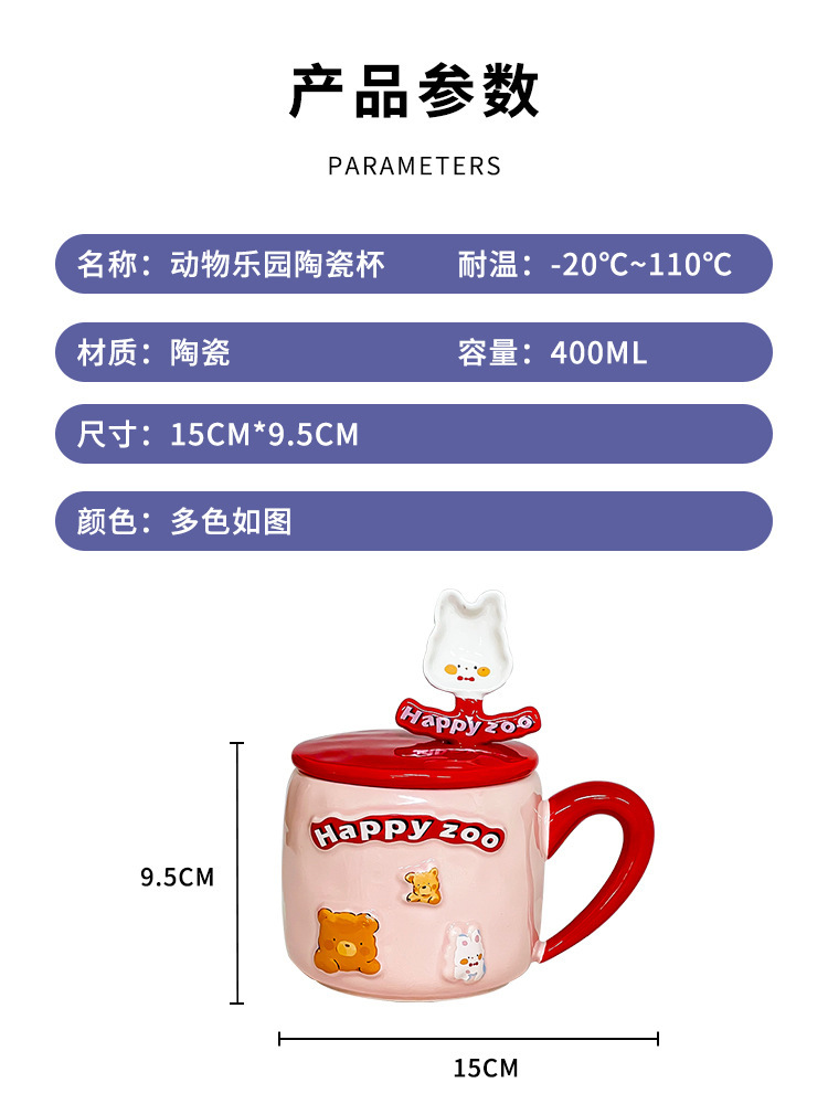 Happy Zoo Ceramic Mug with Lid and Spoon 400ML